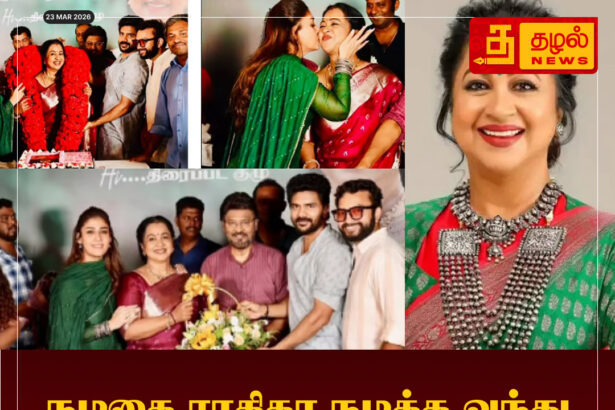 நடிகை ராதிகா நடிக்க வந்து 49 ஆண்டுகள் நிறைவு. அவர் நடித்துக் கொண்டு இருக்கும் ஹாய் என்ற படத்தின் ஷூட்டிங் ஷ்பாட்டில் கேக் வெட்டிக் கொண்டாட்டம். RadikaaSarathkumar…