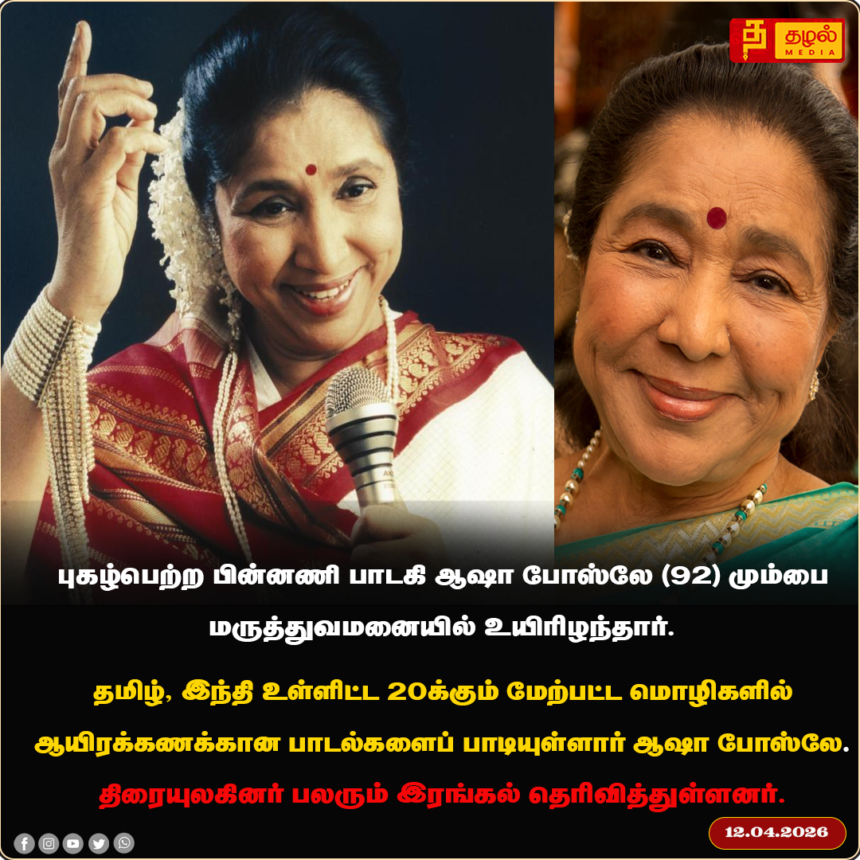 இசை உலகின் சகாப்தம் முடிந்தது! புகழ்பெற்ற பின்னணி பாடகி ஆஷா போஸ்லே (92) மும்பையில் காலமானார் – திரையுலகம் சோகத்தில் மூழ்கியது.