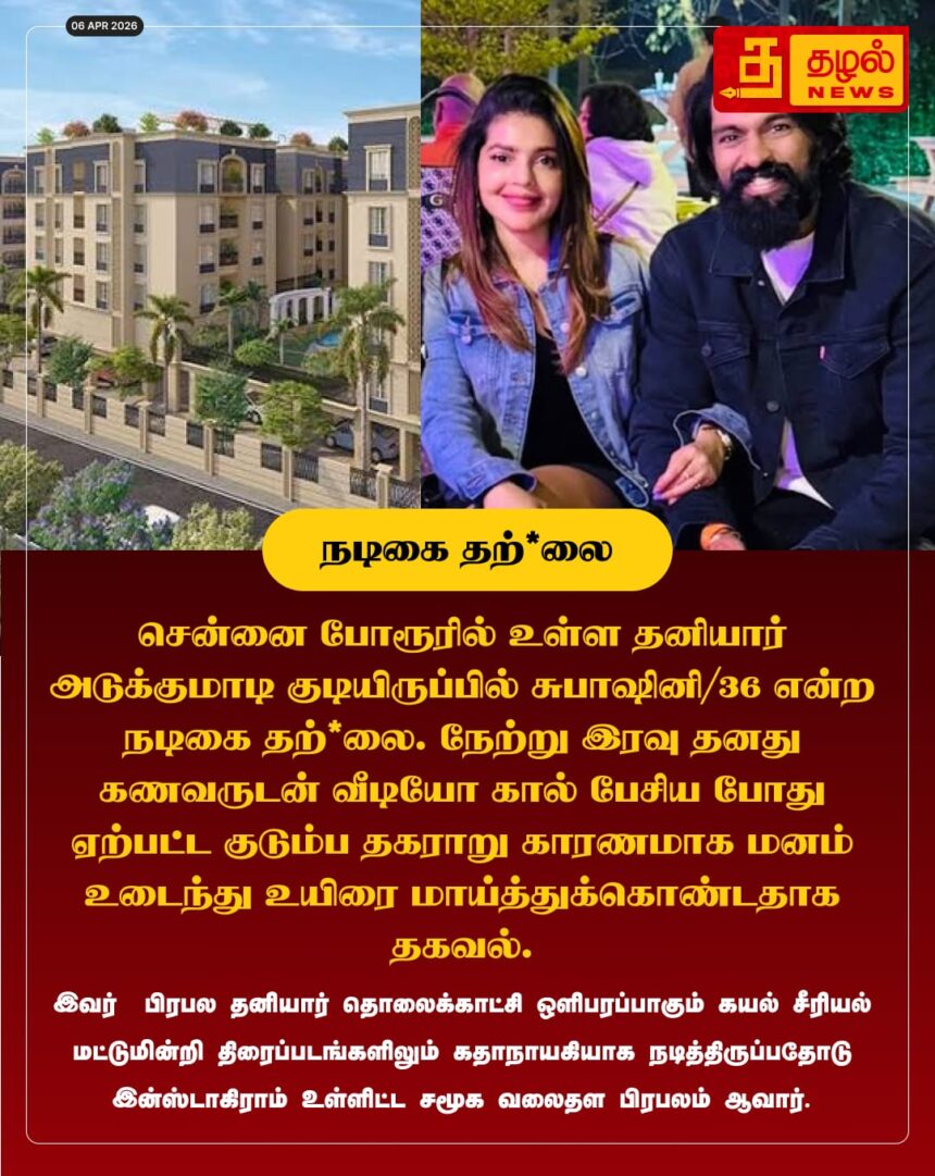 ‘கயல்’ சீரியல் நடிகை சுபாஷினி சென்னையில் தற்கொலை! கணவருடன் வீடியோ காலில் பேசிக்கொண்டிருந்த போதே நேர்ந்த விபரீதத்தால் ரசிகர்கள் அதிர்ச்சி.