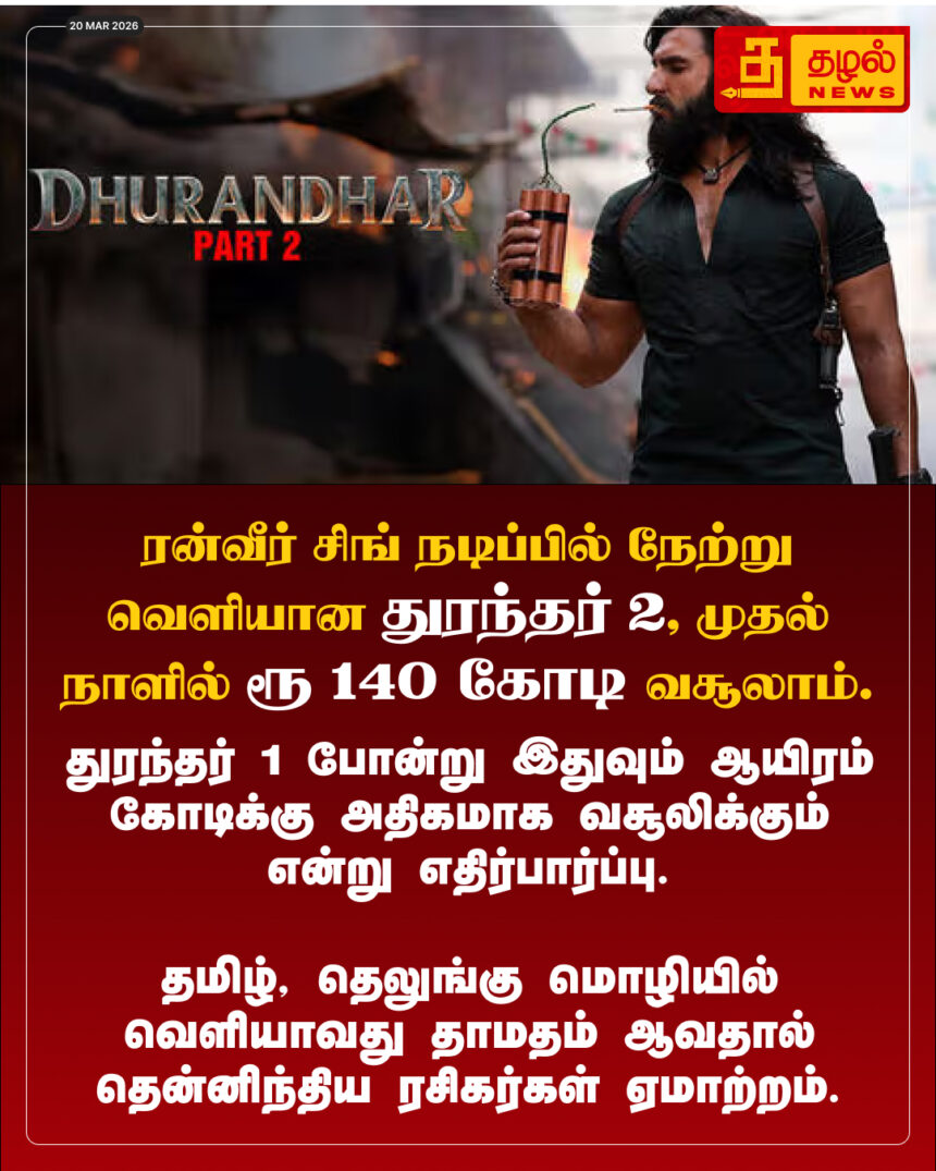 ரன்வீர் சிங் நடிப்பில் நேற்று வெளியான துரந்தர் 2, முதல் நாளில் ரூ 140 கோடி வசூலாம்.
