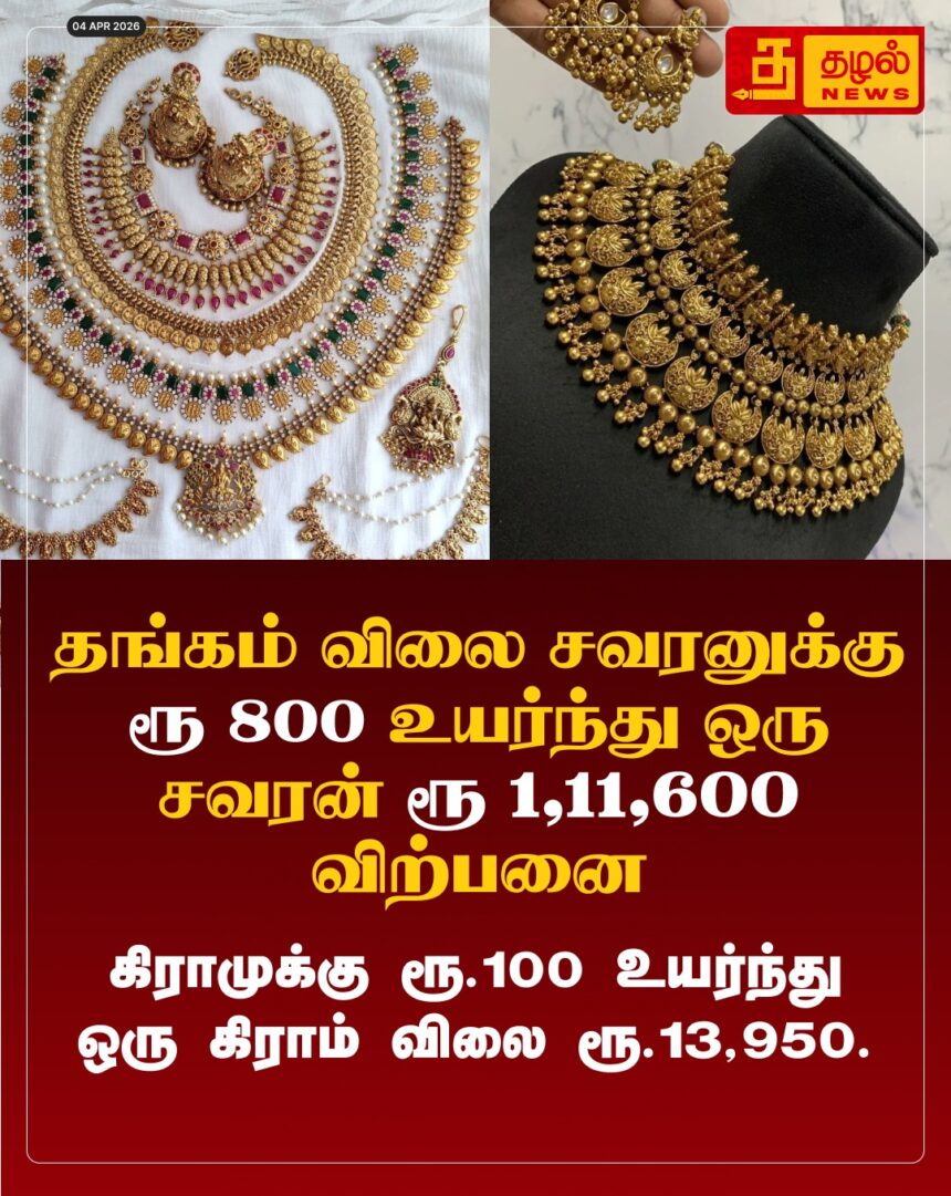 தங்கம் விலை அதிரடி உயர்வு! சவரனுக்கு ரூ.800 அதிகரித்து ஒரு சவரன் ரூ.1,11,600-க்கு விற்பனை செய்யப்படுகிறது.