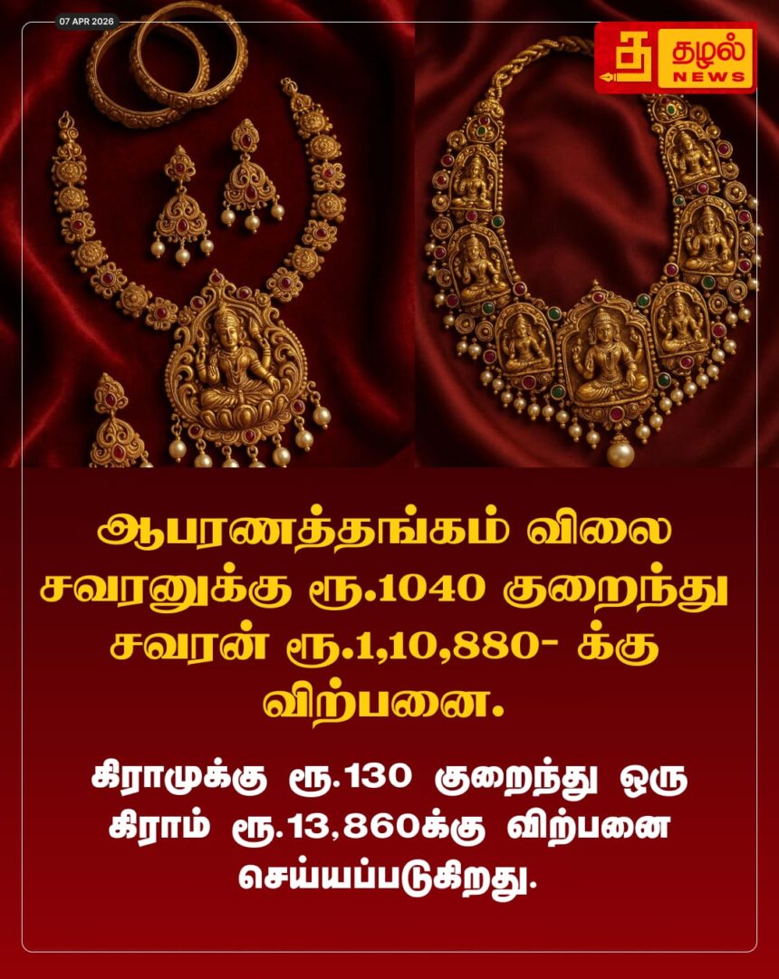 தங்கம் விலை அதிரடி சரிவு! சென்னையில் இன்று சவரனுக்கு ரூ.1,040 குறைந்து ரூ.1.11 லட்சத்திற்கு கீழ் விற்பனை.