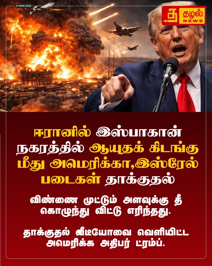 ஈரான் இஸ்பாகான் ஆயுதக் கிடங்கு மீது அமெரிக்க – இஸ்ரேல் படைகள் பயங்கரத் தாக்குதல்! அதிபர் ட்ரம்ப் வெளியிட்ட அதிரடி வீடியோ.