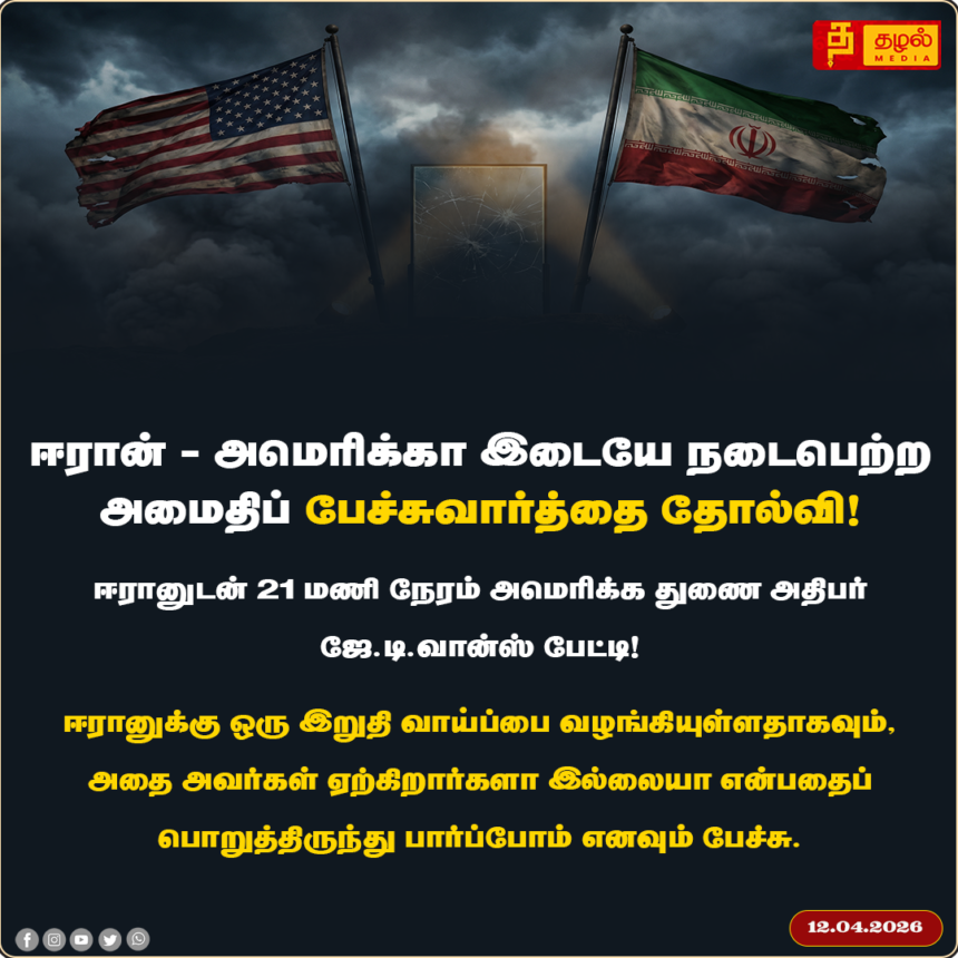 ஈரான் – அமெரிக்கா அமைதிப் பேச்சுவார்த்தை தோல்வி! 21 மணி நேர மாரத்தான் விவாதத்திற்குப் பின் உடன்பாடு இன்றித் திரும்பினார் ஜே.டி. வேன்ஸ்.