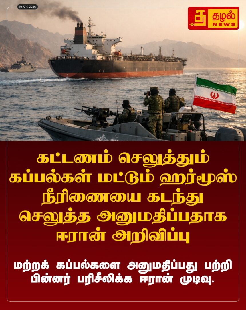 ஹார்முஸ் நீரிணையில் புதிய நிபந்தனை! கட்டணம் செலுத்தும் கப்பல்களை மட்டுமே அனுமதிக்க ஈரான் அதிரடி முடிவு.