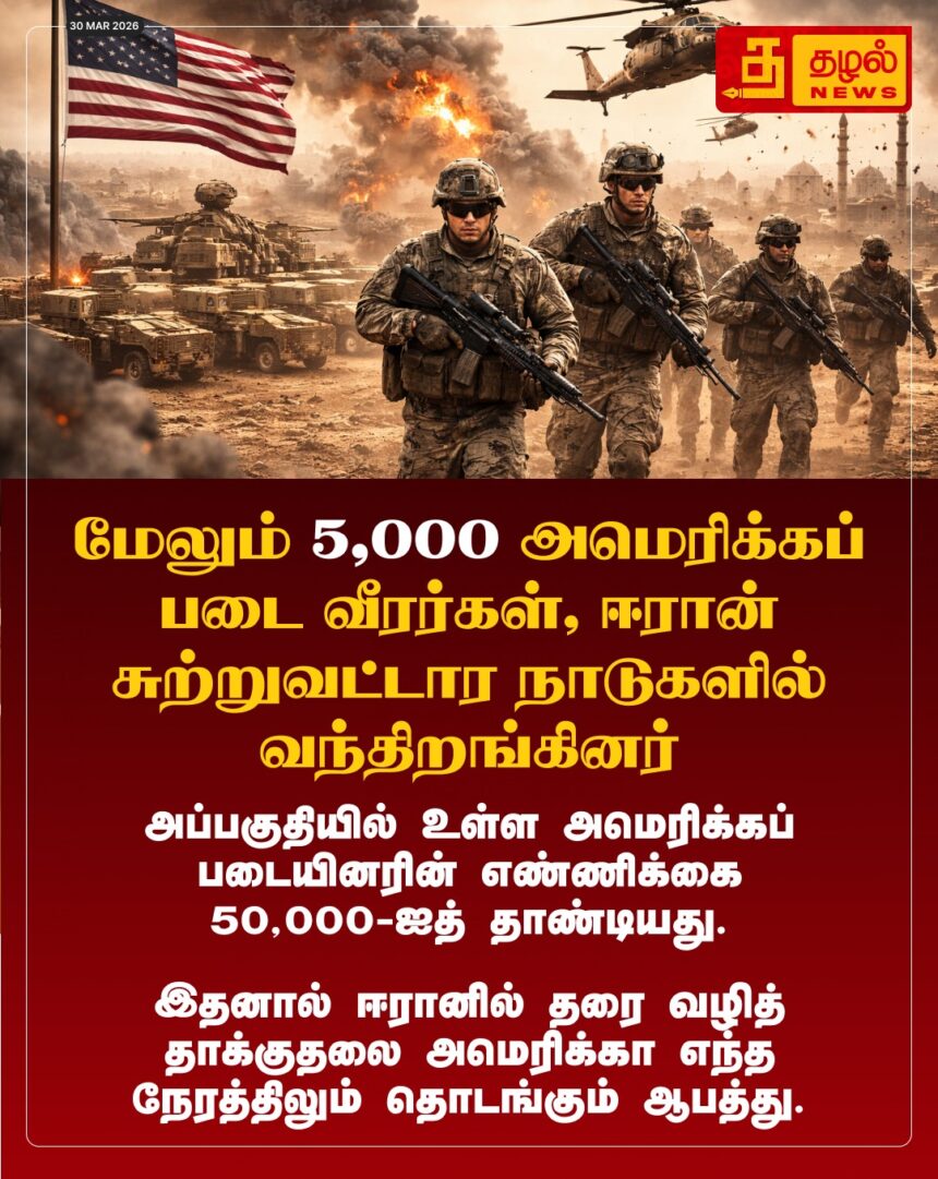 ஈரான் எல்லையில் 50,000 அமெரிக்கப் படை வீரர்கள் குவிப்பு! எந்த நேரத்திலும் தரைவழித் தாக்குதல் தொடங்கும் அபாயம்.