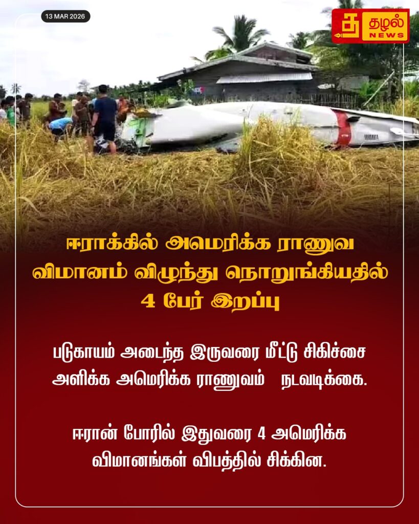 ஈராக்கில் அமெரிக்க ராணுவ விமானம் விழுந்து நொறுங்கியதில் 4 பேர் இறப்பு.