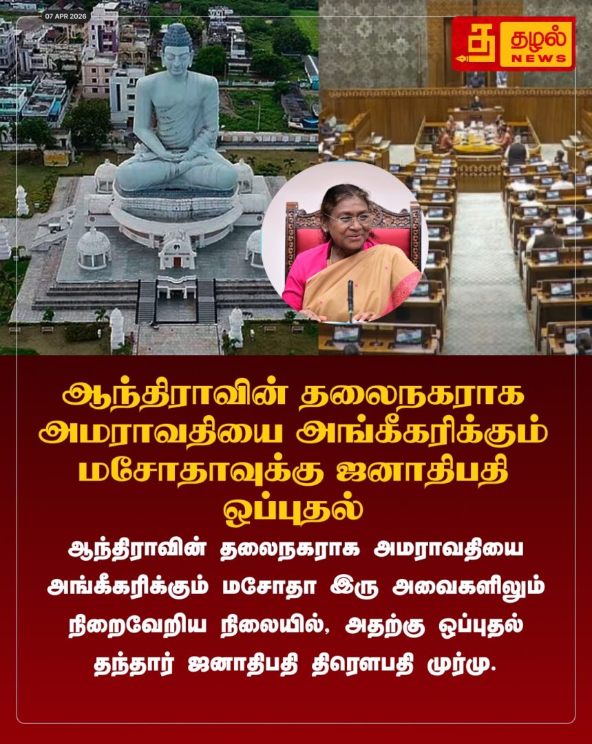 ஆந்திராவின் அதிகாரப்பூர்வ தலைநகராக அமராவதி அங்கீகாரம்! ஜனாதிபதி திரௌபதி முர்மு ஒப்புதல் அளித்ததைத் தொடர்ந்து மத்திய அரசு அரசாணை வெளியீடு.
