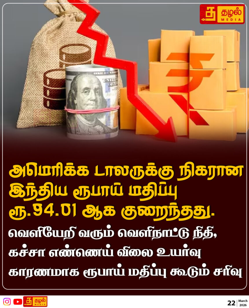 இந்திய ரூபாயின் மதிப்பு மீண்டும் சரிவு.
