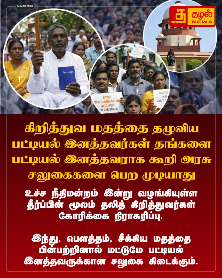 உச்ச நீதிமன்றம் இன்று வழங்கியுள்ள தீர்ப்பின் மூலம் தலித் கிறித்துவர்கள் கோரிக்கை நிராகரிப்பு.