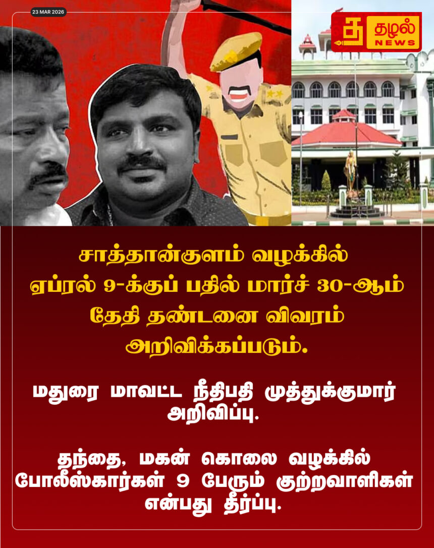 சாத்தான்குளம் வழக்கில் ஏப்ரல் 9-க்குப் பதில் மார்ச் 30-ஆம் தேதி தண்டனை விவரம் அறிவிக்கப்படும்.