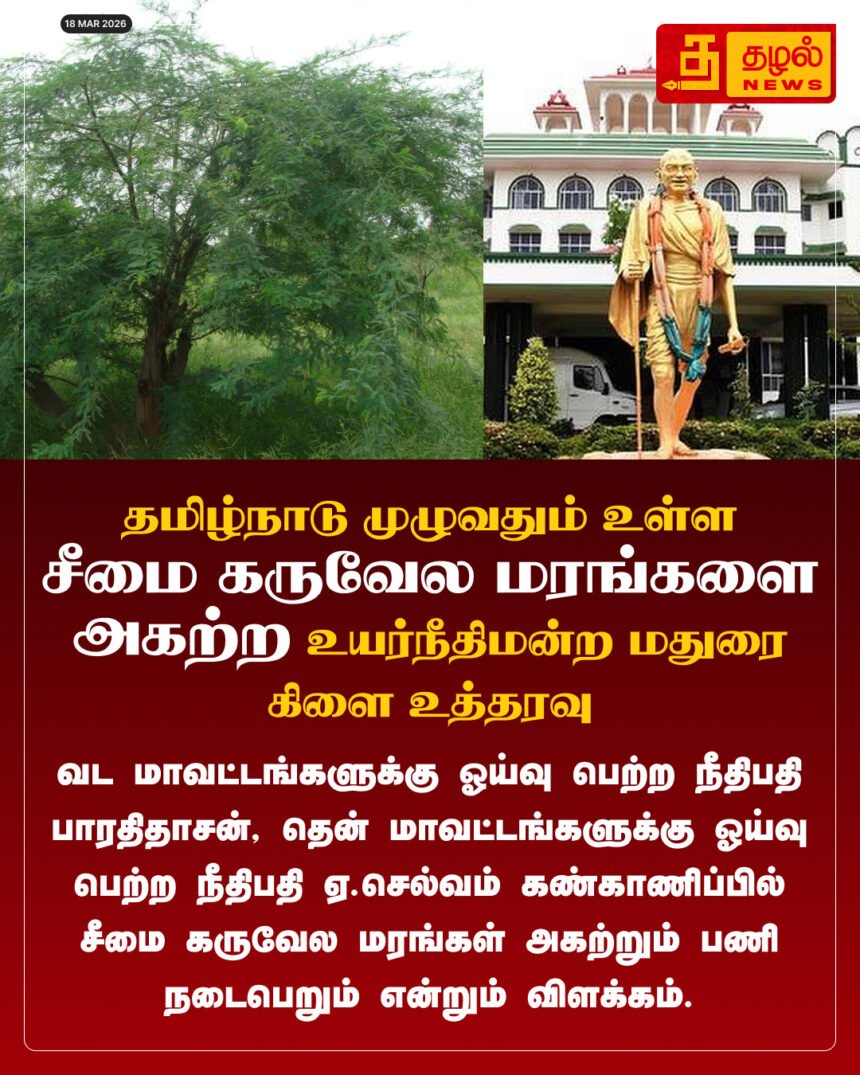 தமிழ்நாடு முழுவதும் உள்ள சீமை கருவேல மரங்களை அகற்ற உயர்நீதிமன்ற மதுரை கிளை உத்தரவு.