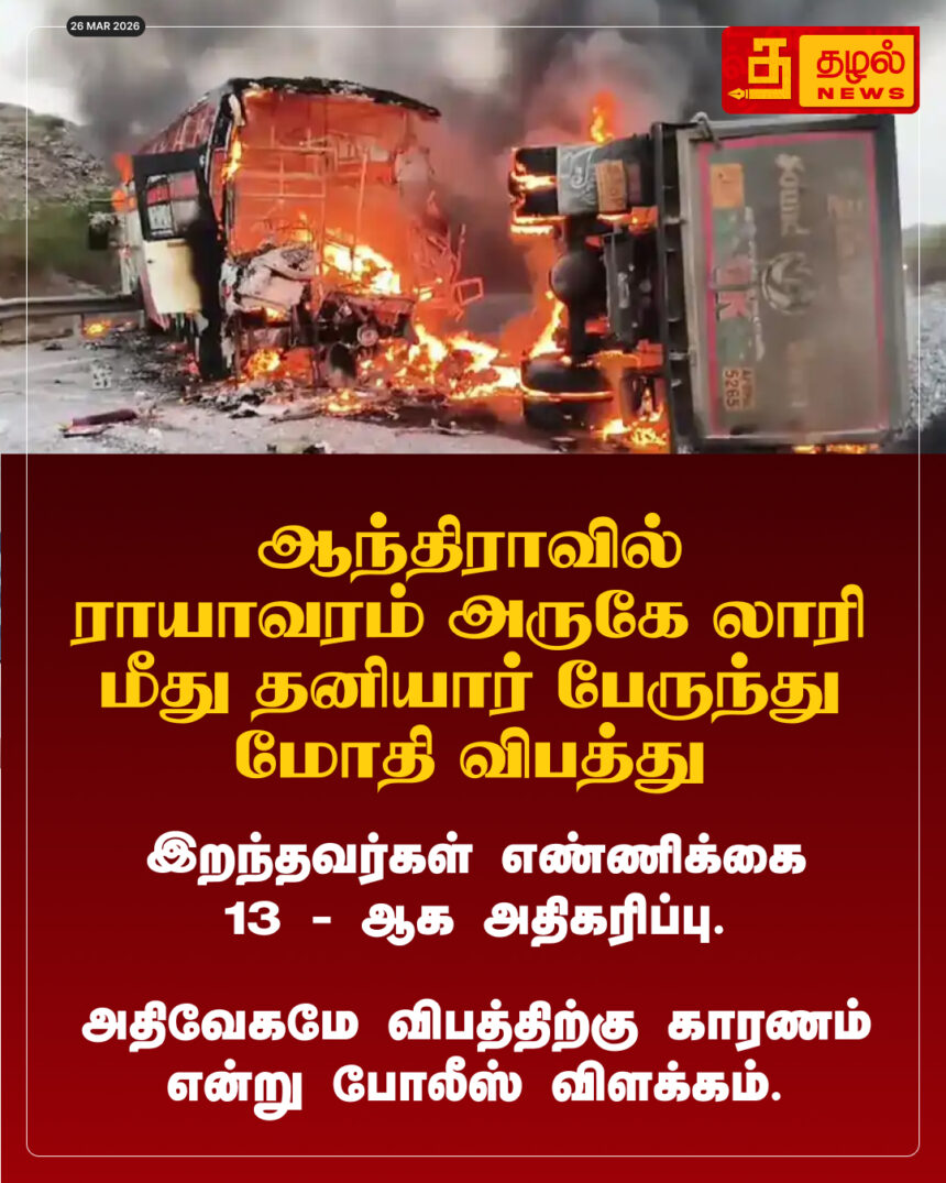 ஆந்திராவில் பயங்கரம்! ராயாவரம் அருகே லாரி மீது தனியார் பேருந்து மோதி விபத்து – பலி எண்ணிக்கை 13-ஆக உயர்வு.