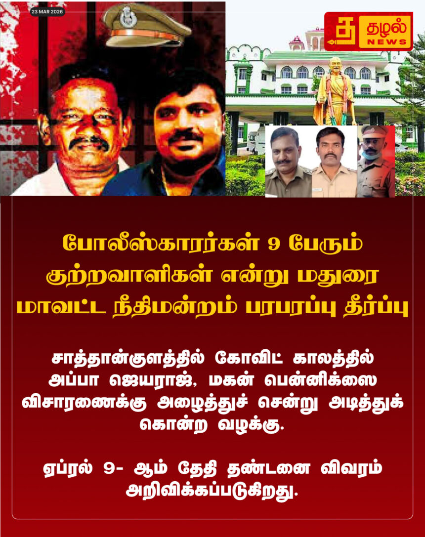 போலீஸ்காரர்கள் 9 பேரும் குற்றவாளிகள் என்று மதுரை மாவட்ட நீதிமன்றம் பரபரப்பு தீர்ப்பு.