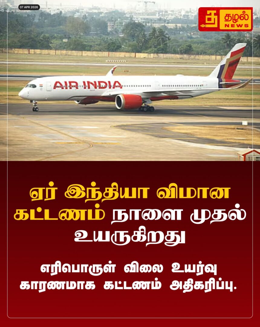 ஏர் இந்தியா விமானக் கட்டணம் நாளை முதல் அதிரடி உயர்வு! எரிபொருள் விலை உயர்வால் உள்நாடு மற்றும் சர்வதேச விமான டிக்கெட் விலைகள் அதிகரிக்கின்றன.