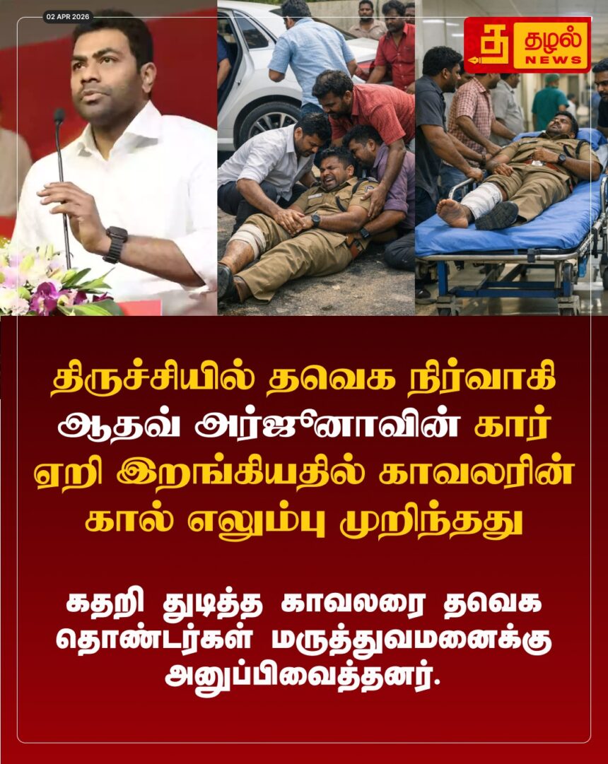 திருச்சியில் தவெக நிர்வாகி ஆதவ் அர்ஜுனாவின் கார் ஏறி இறங்கியதில் காவலர் காயம்!
