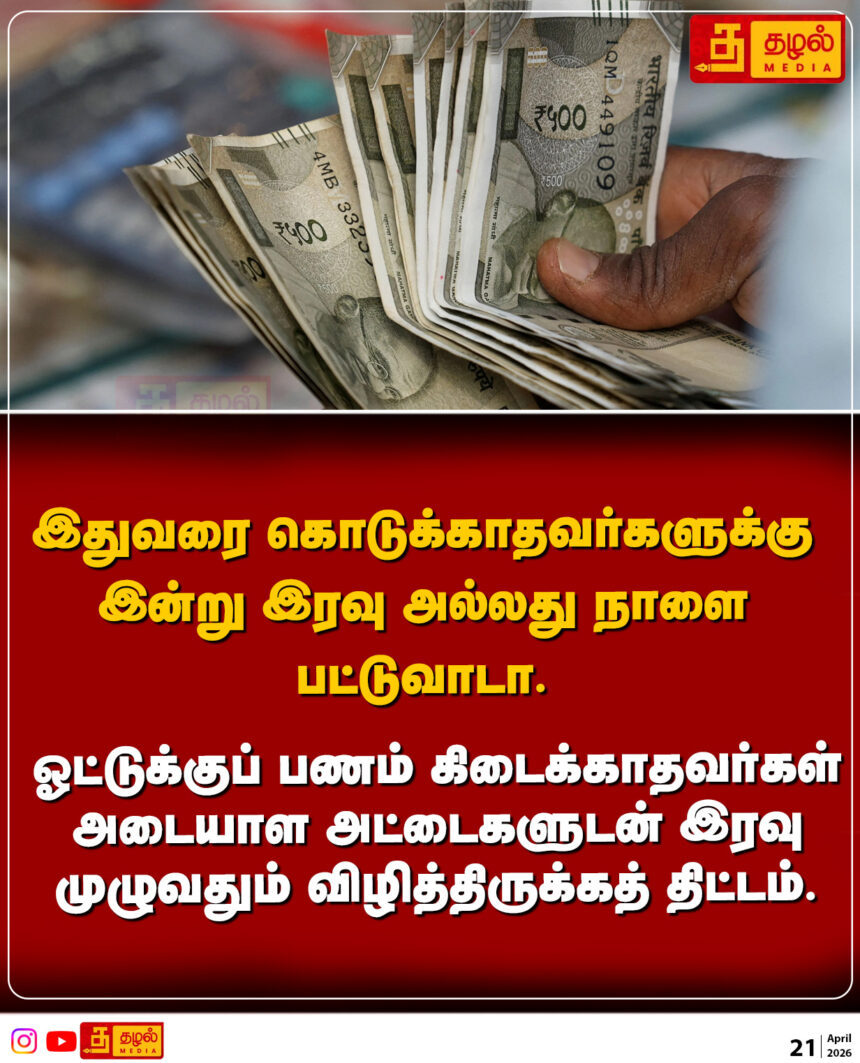 இதுவரை கொடுக்காதவர்களுக்குஇன்று இரவு அல்லது நாளை பட்டுவாடா.