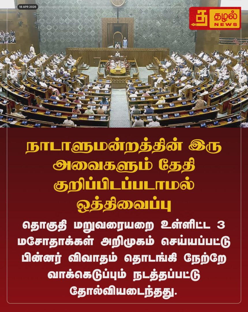 நாடாளுமன்றத்தின் இரு அவைகளும் தேதி குறிப்பிடப்படாமல் ஒத்திவைப்பு! மகளிர் மசோதா தோல்வியைத் தொடர்ந்து பட்ஜெட் கூட்டத்தொடர் நிறைவு.