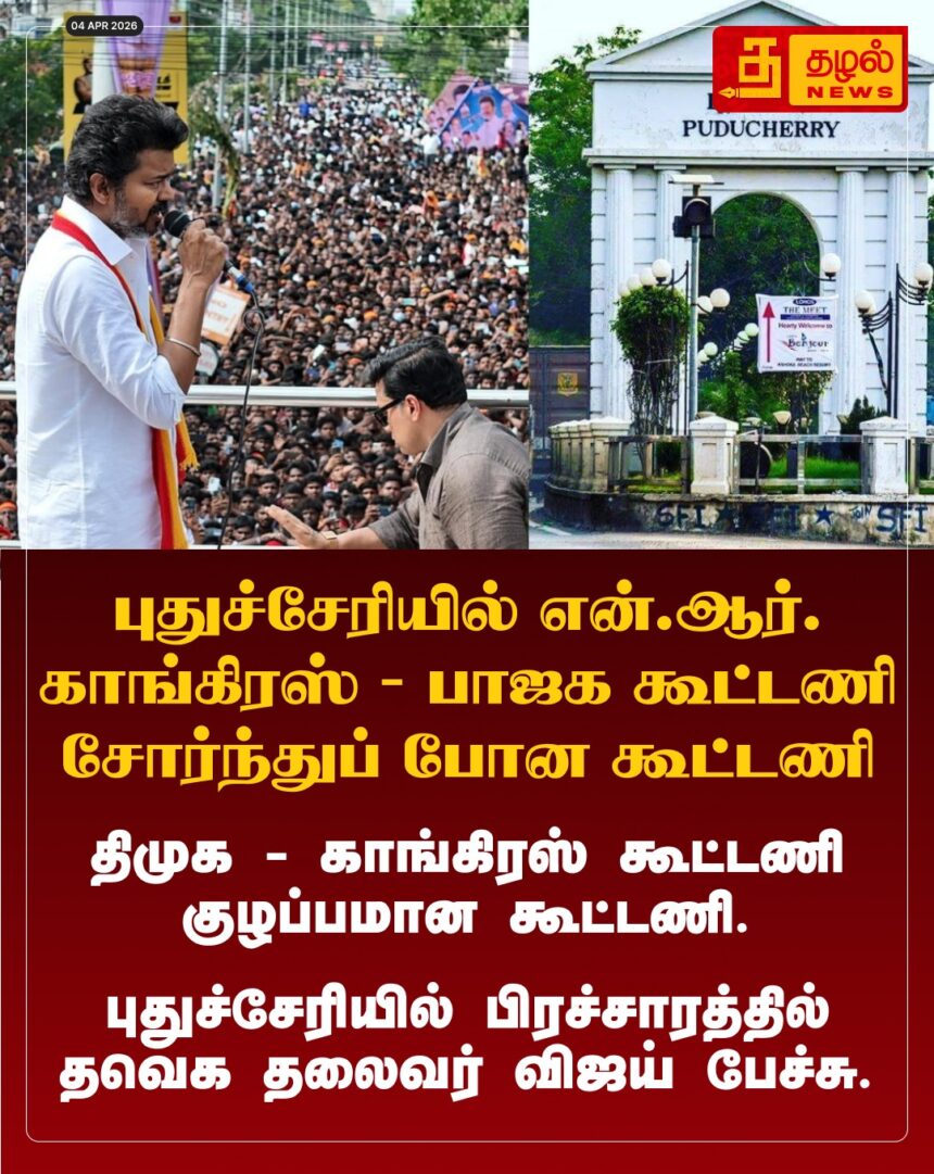 “புதுச்சேரியில் ஒரு பக்கம் சோர்ந்துப் போன கூட்டணி; மறுபக்கம் குழப்பமான கூட்டணி!” – இரு துருவங்களையும் ஒரே மேடையில் விமர்சித்த தவெக தலைவர் விஜய்.