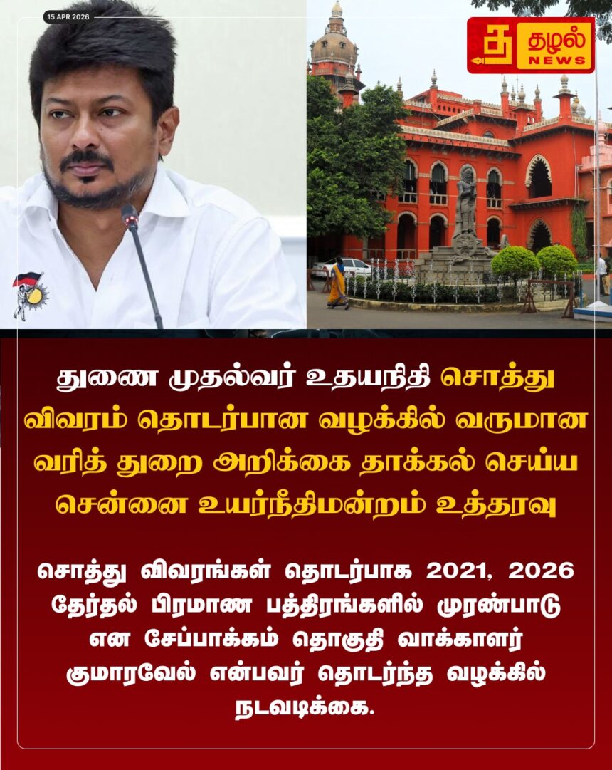 உதயநிதி ஸ்டாலின் சொத்து விவர வழக்கில் அதிரடி திருப்பம்! வருமான வரித்துறை அறிக்கை தாக்கல் செய்யச் சென்னை உயர் நீதிமன்றம் உத்தரவு.