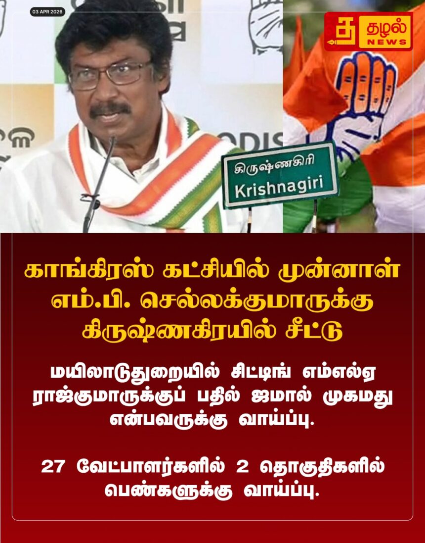 காங்கிரஸ் வேட்பாளர் பட்டியலில் அதிரடி மாற்றங்கள்! கிருஷ்ணகிரியில் முன்னாள் எம்.பி. செல்லக்குமார் போட்டி; 27 இடங்களில் 2 பெண் வேட்பாளர்களுக்கு வாய்ப்பு அளிக்கப்பட்டுள்ளது.