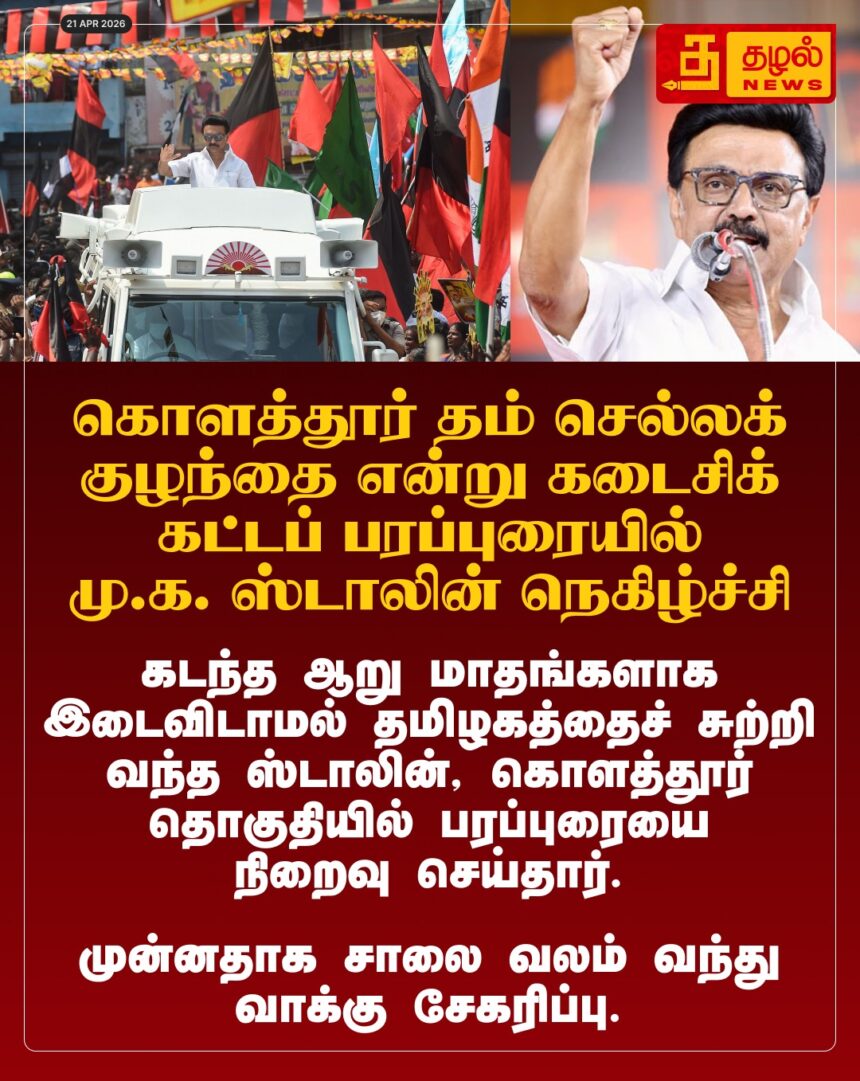 “கொளத்தூர் என் செல்லக் குழந்தை!” – சொந்தத் தொகுதியில் முதல்வர் ஸ்டாலின் உருக்கம். 6 மாத கால அசுரப் பிரசாரத்தை இன்றுடன் நிறைவு செய்தார்.