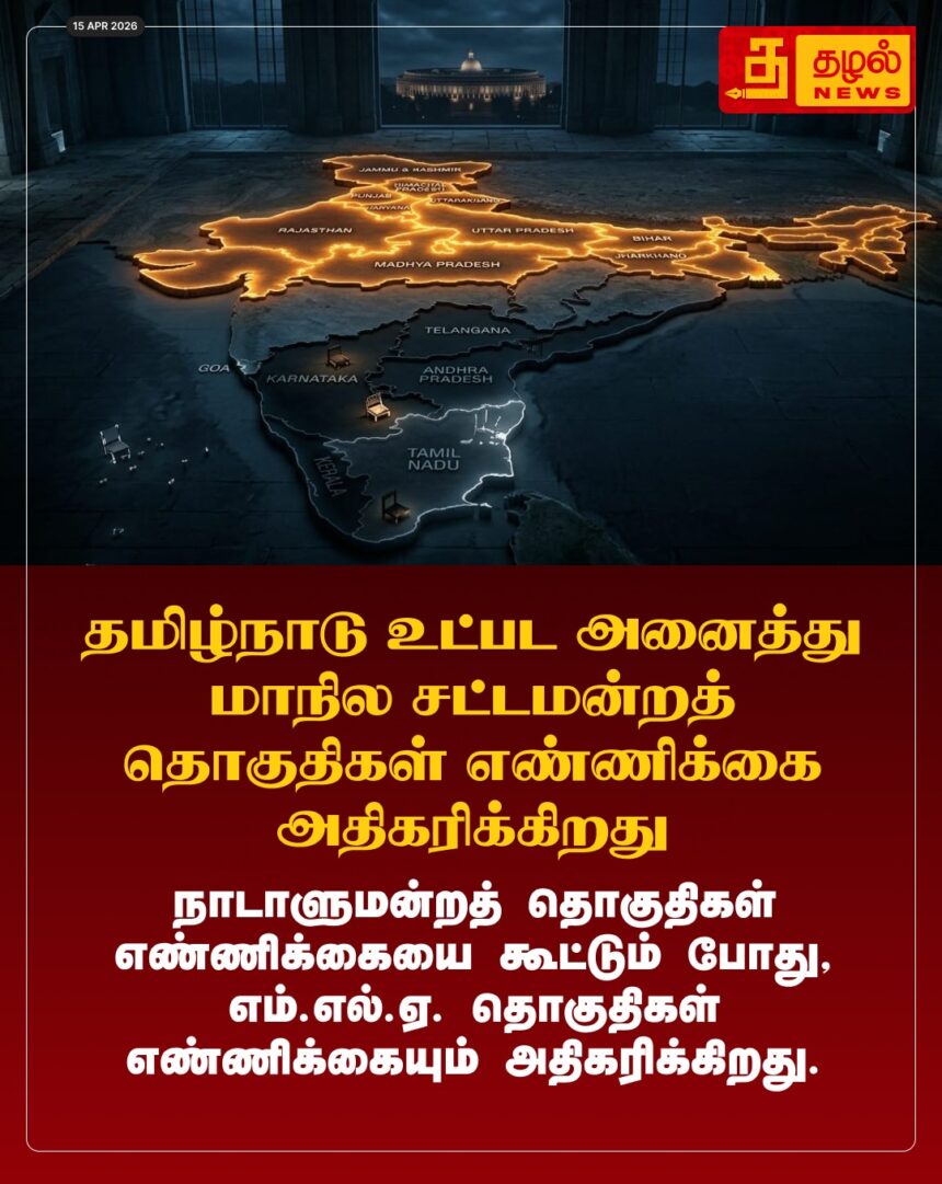 எம்.பி தொகுதிகளுடன் இணைந்து எம்.எல்.ஏ தொகுதிகளின் எண்ணிக்கையும் உயர்வு! தமிழ்நாடு உள்ளிட்ட அனைத்து மாநிலச் சட்டமன்றங்களிலும் அதிரடி மாற்றம்.