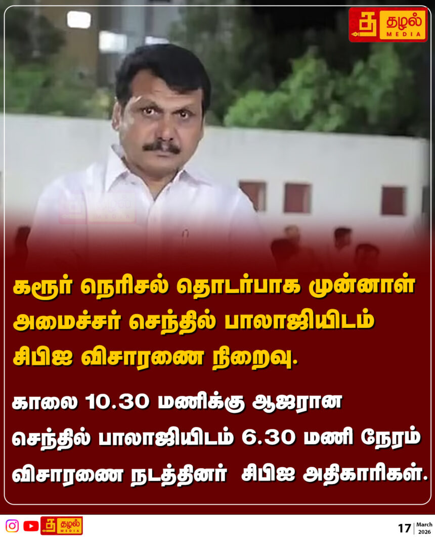 கரூர் நெரிசல் தொடர்பாக முன்னாள் அமைச்சர் செந்தில் பாலாஜியிடம் சிபிஐ விசாரணை நிறைவு.