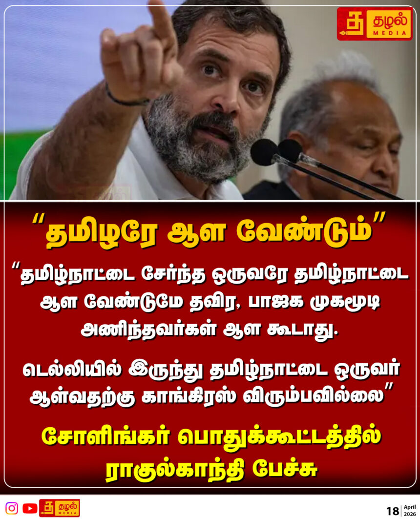 டெல்லியில் இருந்து தமிழ்நாட்டை ஆளும் முயற்சிக்கு ராகுல் எதிர்ப்பு.