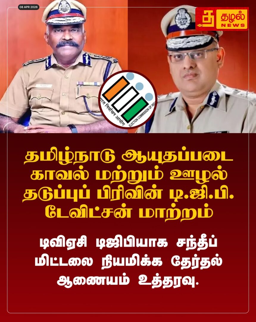 லஞ்ச ஒழிப்புத் துறை டி.ஜி.பி. டேவிட்சன் தேவஆசீர்வாதம் அதிரடி மாற்றம்! புதிய டி.ஜி.பி-யாக சந்தீப் மிட்டலை நியமிக்கத் தேர்தல் ஆணையம் உத்தரவு.