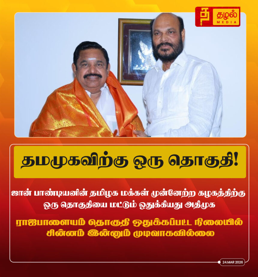 ஜான் பாண்டியனின் தமிழக மக்கள் முன்னேற்ற கழகத்திற்கு ஒரு தொகுதியை மட்டும் ஒதுக்கியது அதிமுக