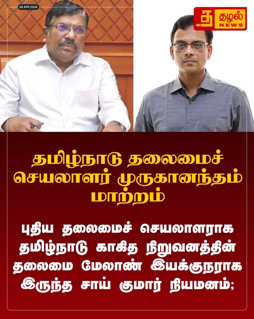 தமிழகத் தலைமைச் செயலாளர் என். முருகானந்தம் அதிரடி மாற்றம்! புதிய தலைமைச் செயலாளராக எம். சாய் குமார் ஐஏஎஸ் நியமனம் – தேர்தல் ஆணையம் அதிரடி.
