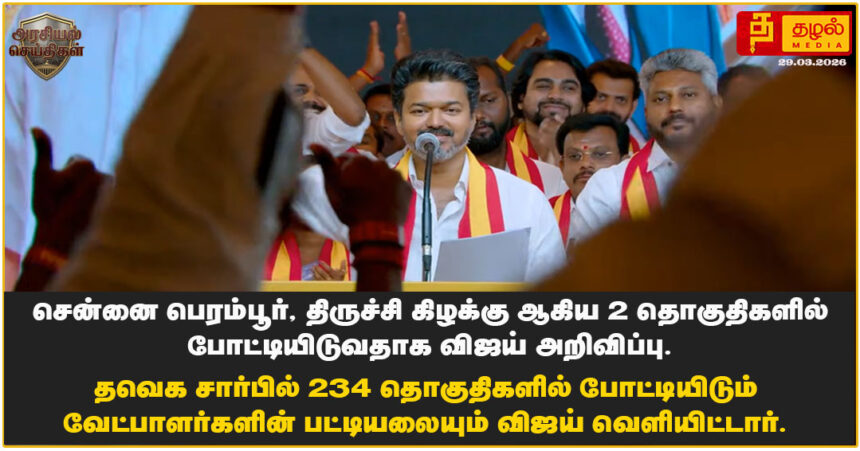 தமிழக வெற்றிக் கழகத்தின் 234 வேட்பாளர்கள் பட்டியலை வெளியிட்டார் விஜய்! பெரம்பூர் மற்றும் திருச்சி கிழக்கு ஆகிய 2 தொகுதிகளில் விஜய் போட்டி.