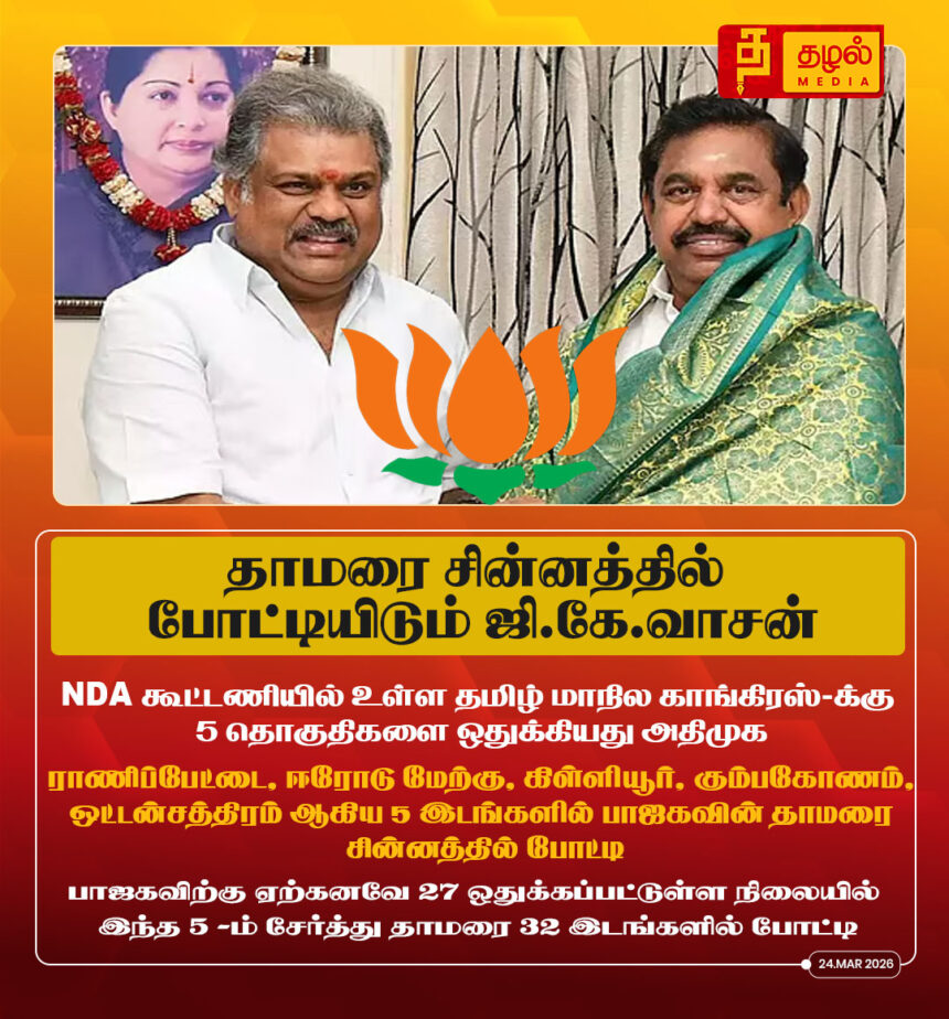 NDA கூட்டணியில் உள்ள தமிழ் மாநில காங்கிரஸ்-க்கு 5 தொகுதிகளை ஒதுக்கியது அதிமுக