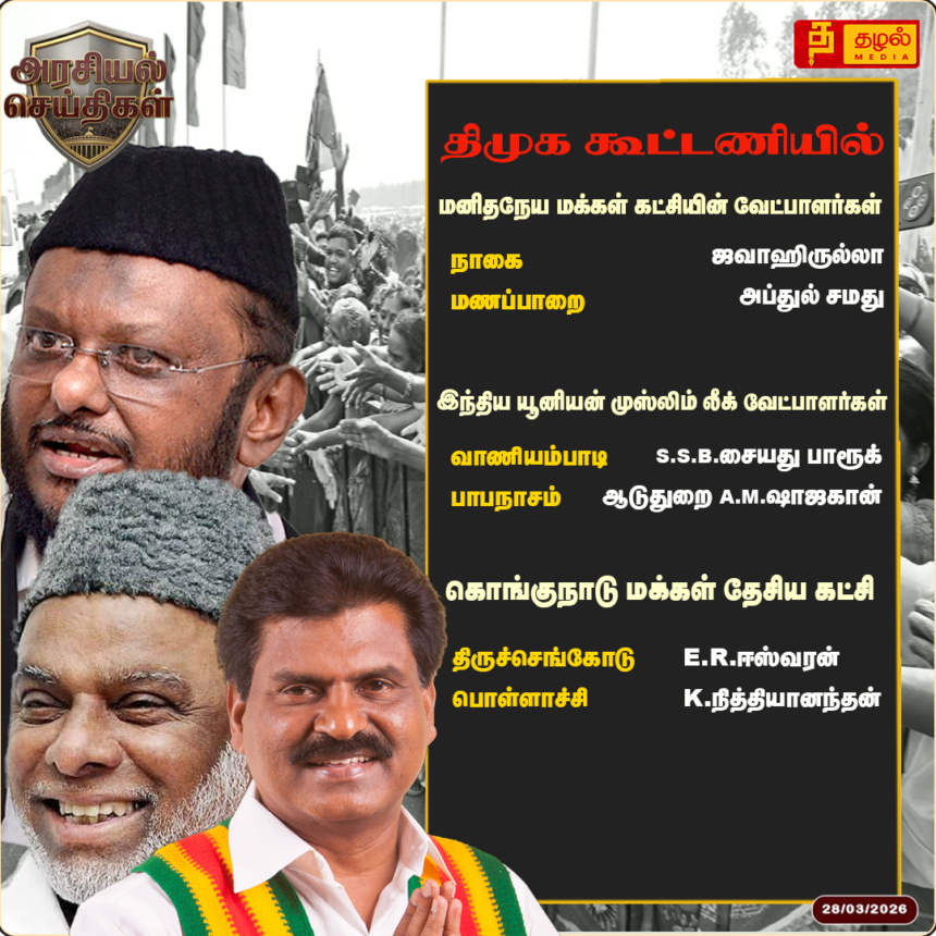 திமுக கூட்டணியில் மமக, ஐயுஎம்எல், கொமதேக வேட்பாளர்கள் அறிவிப்பு! நாகையில் ஜவாஹிருல்லா, திருச்செங்கோட்டில் ஈஸ்வரன் போட்டி.