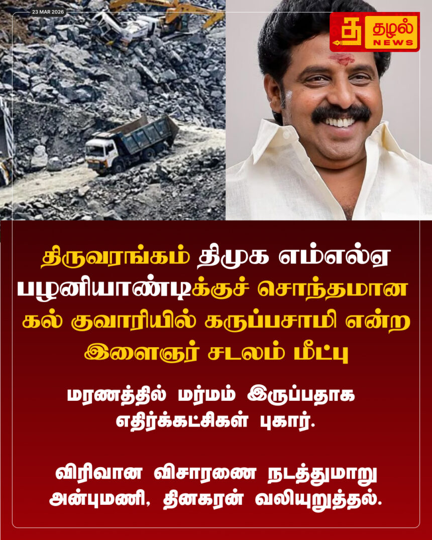 திருவரங்கம் திமுக எம்எல்ஏ பழனியாண்டிக்குச் சொந்தமான கல் குவாரியில் கருப்பசாமி என்ற இளைஞர் சடலம் மீட்பு.