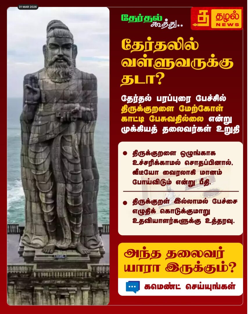 தேர்தலில் வள்ளுவருக்குத் தடா? திருக்குறளைச் சொன்னால் மானம் போய்விடும் என முக்கியத் தலைவர்கள் பீதி.