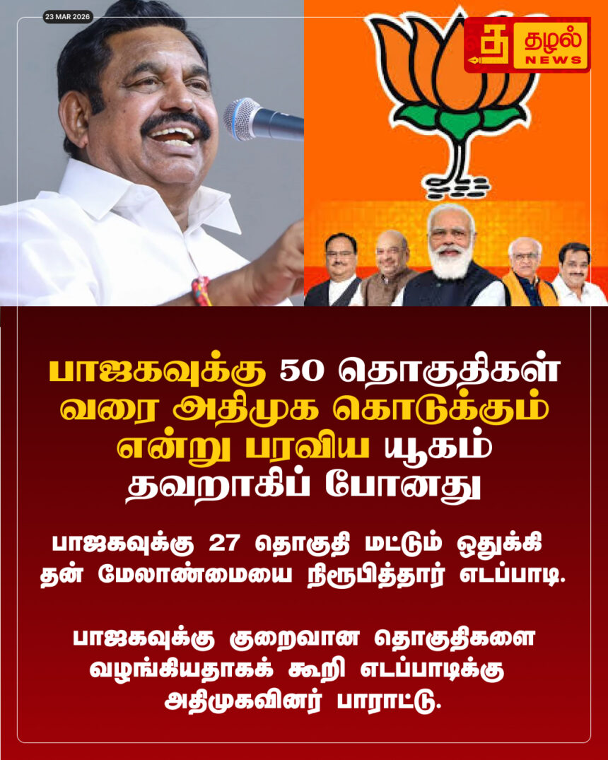 பாஜகவுக்கு 50 தொகுதிகள் வரை அதிமுக கொடுக்கும் என்று பரவிய யூகம் தவறாகிப் போனது.