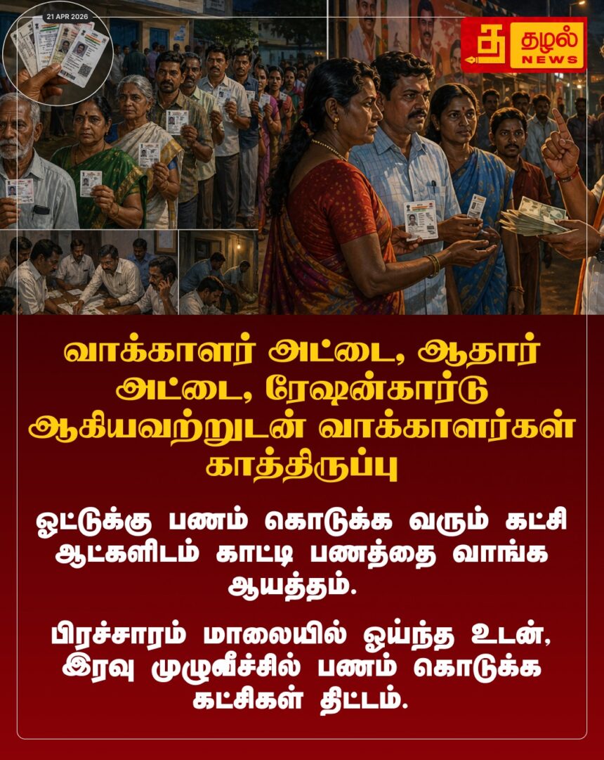 வாக்காளர் அடையாள அட்டை, ரேஷன் கார்டுடன் காத்திருக்கும் மக்கள்! பிரசாரம் முடிந்ததும் ‘நள்ளிரவு ஆபரேஷனை’ தொடங்க அரசியல் கட்சிகள் திட்டம்.