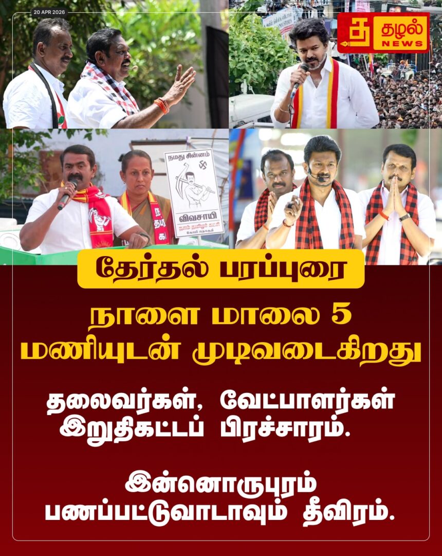 தமிழகத்தில் நாளை மாலை 5 மணியுடன் தேர்தல் பரப்புரை நிறைவு! தலைவர்களின் இறுதிக்கட்ட வேட்டை – மறுபுறம் பணப் பட்டுவாடா தீவிரம்.