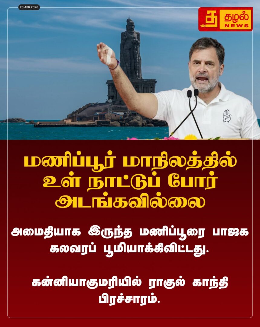 மணிப்பூரைச் சீரழித்துவிட்டதாக பாஜக மீது ராகுல் காந்தி கடும் தாக்கு! கன்னியாகுமரியில் தீவிர வாக்கு சேகரிப்பு.