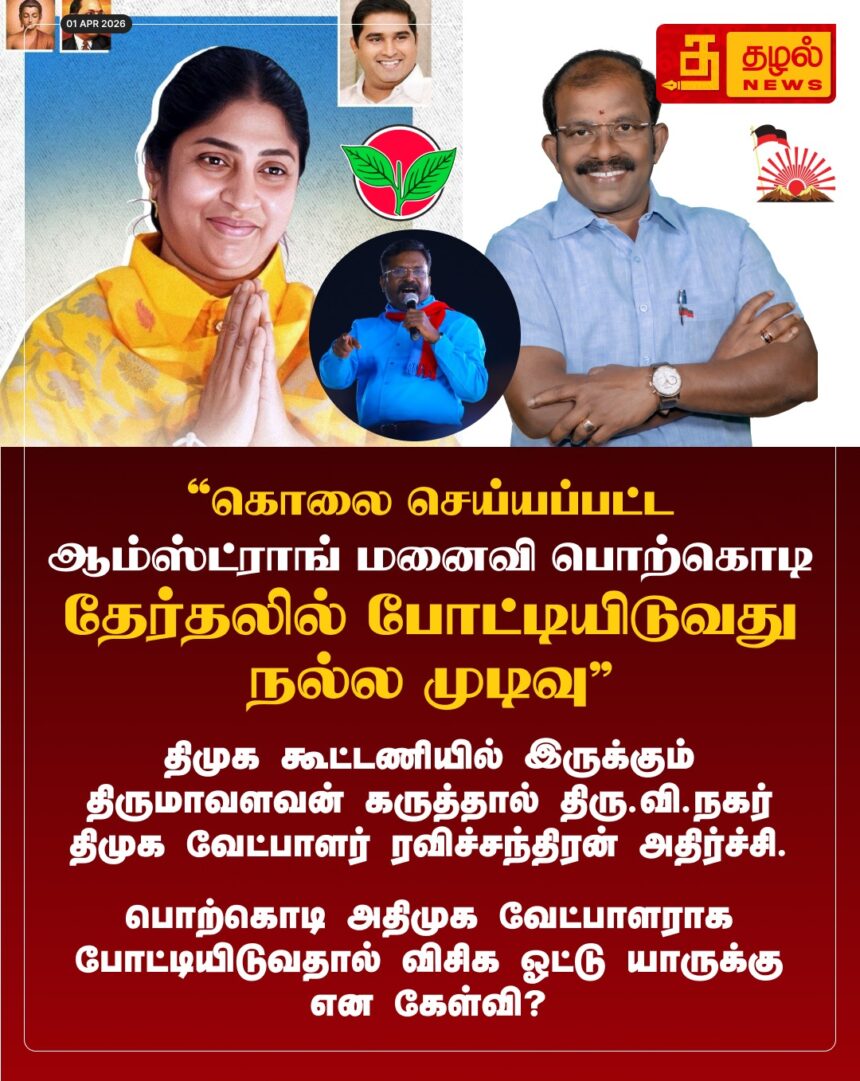 கொலை செய்யப்பட்ட ஆர்ம்ஸ்ட்ராங் மனைவி பொற்கொடி தேர்தலில் போட்டியிடுவது குறித்த திருமாவளவன் கருத்தால் திமுக கூட்டணியில் சலசலப்பு.