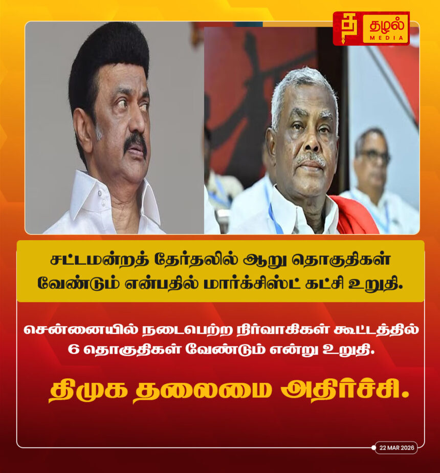 சட்டமன்றத் தேர்தலில் ஆறு தொகுதிகள் வேண்டும் என்பதில் மார்க்சிஸ்ட் கட்சி உறுதி.