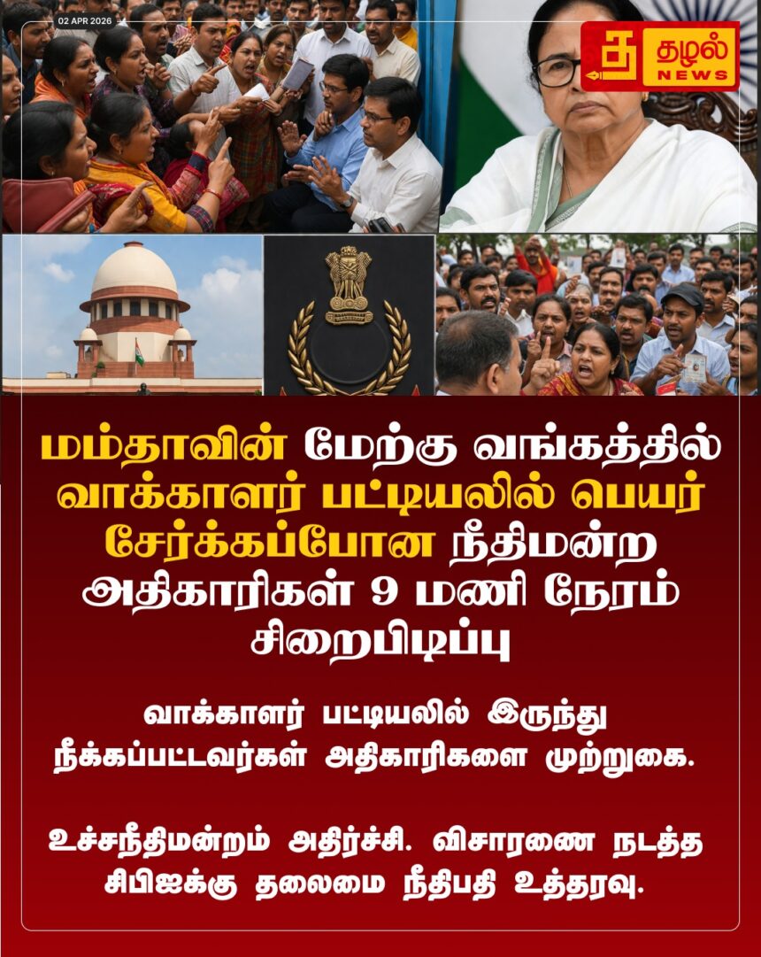 மேற்கு வங்கத்தில் அதிரடி! வாக்காளர் பட்டியலில் பெயர் சேர்க்கச் சென்ற நீதிமன்ற அதிகாரிகள் 9 மணி நேரம் சிறைபிடிப்பு – சிபிஐ விசாரணைக்கு உச்ச நீதிமன்றம் அதிரடி உத்தரவு.