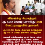 மொத்தம் ரூ.520 கோடி சொத்து உள்ளது. வேட்புமனுவில் விஜய் தகவல்.