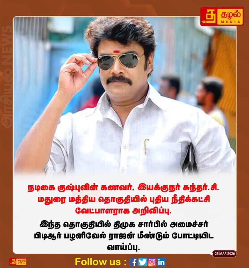 மதுரை மத்திய தொகுதியில் இயக்குநர் சுந்தர்.சி போட்டி! புதிய நீதிக்கட்சி வேட்பாளராக அறிவிப்பு – பிடிஆர்-உடன் நேரடி மோதல்?