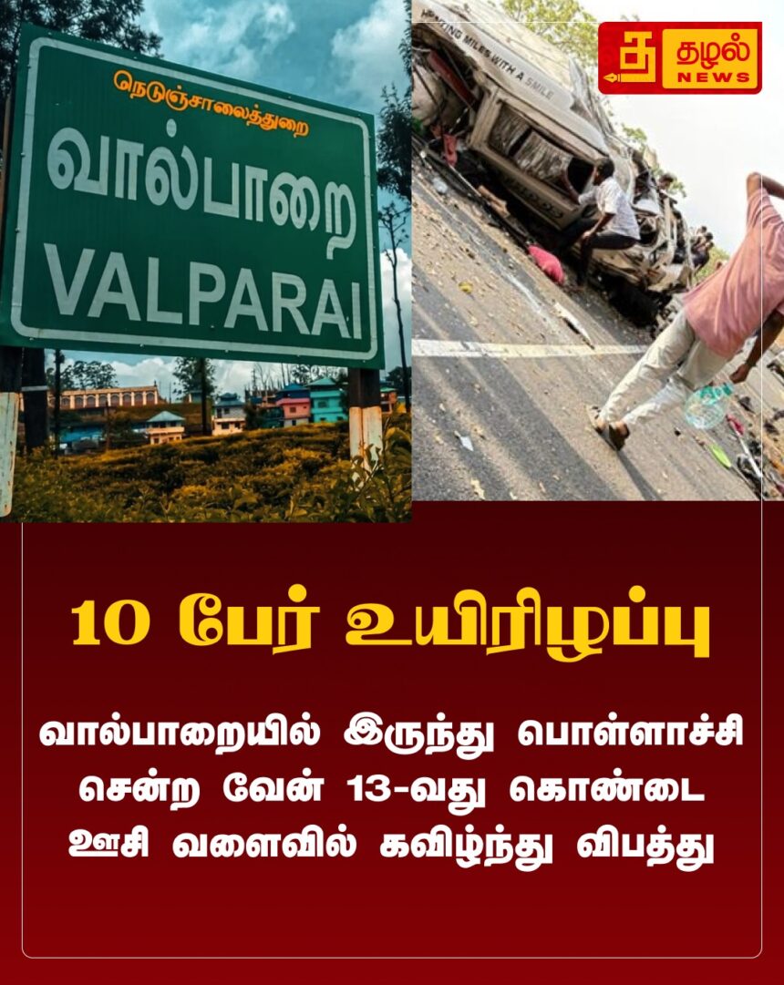 வால்பாறையில் கோர விபத்து: கொண்டை ஊசி வளைவில் வேன் கவிழ்ந்து 10 பேர் உயிரிழப்பு. பொள்ளாச்சி நோக்கிச் சென்றபோது நேர்ந்த சோகம்.