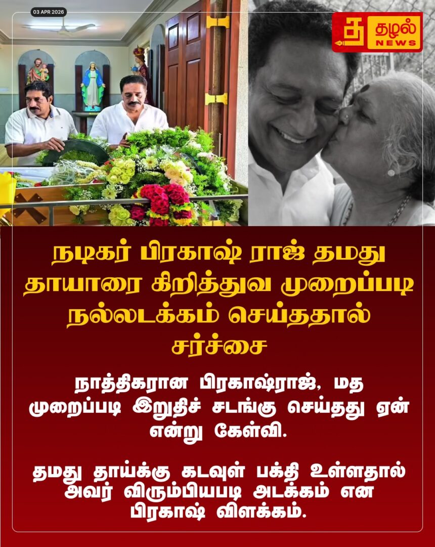 நடிகர் பிரகாஷ் ராஜ் தனது தாயாரைக் கிறித்தவ முறைப்படி நல்லடக்கம் செய்ததற்குக் கிளம்பியுள்ள விமர்சனங்களுக்கு விளக்கம்