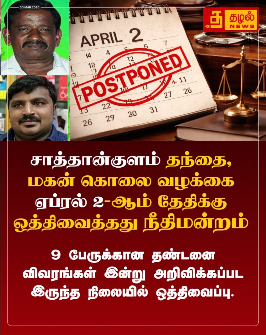 சாத்தான்குளம் வழக்கில் 9 போலீசாருக்கான தண்டனை ஏப்ரல் 2-க்கு ஒத்திவைப்பு! மதுரை நீதிமன்றம் அதிரடி உத்தரவு.
