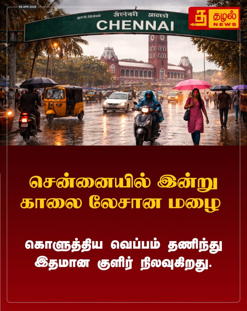 சென்னையில் இன்று காலை திடீர் மழையினால் இதமான சூழல்! கொளுத்திய வெயிலில் இருந்து தப்பித்த மக்கள் மகிழ்ச்சி.